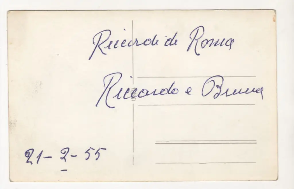 Il babbo annotò dietro a una fotografia del viaggio romano con la sua pesante calligrafia che sembra incidere la carta: